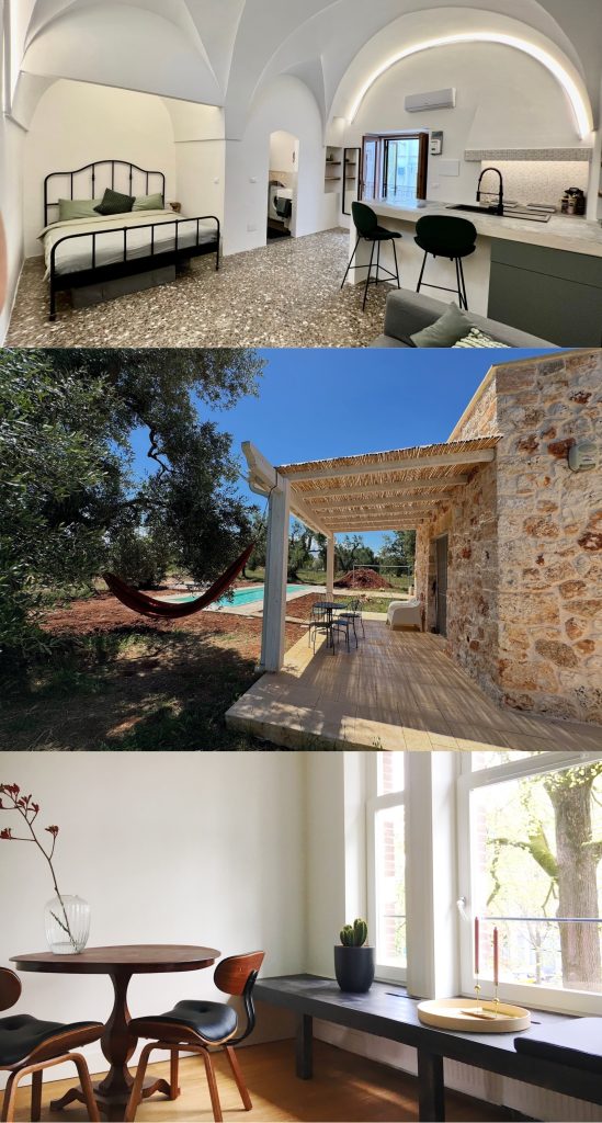 Mijn TinyTrullo met modern vakantiehuis is vanaf eind april te huur, en er zijn nog een aantal weken beschikbaar in de zomer. Het is heerlijk vertoeven onder de olijfbomen, aan het zwembad, in alle rust. Misschien voel jij daar ook de verbinding met het land, en de ’traagheid van de stenen’ waar ik het eerder over had. Op Airbnb vind je alle foto’s, omschrijving en prijzen. Stuur me een berichtje als je rechtstreeks wilt boeken, dan krijg je 10% vriendenkorting.